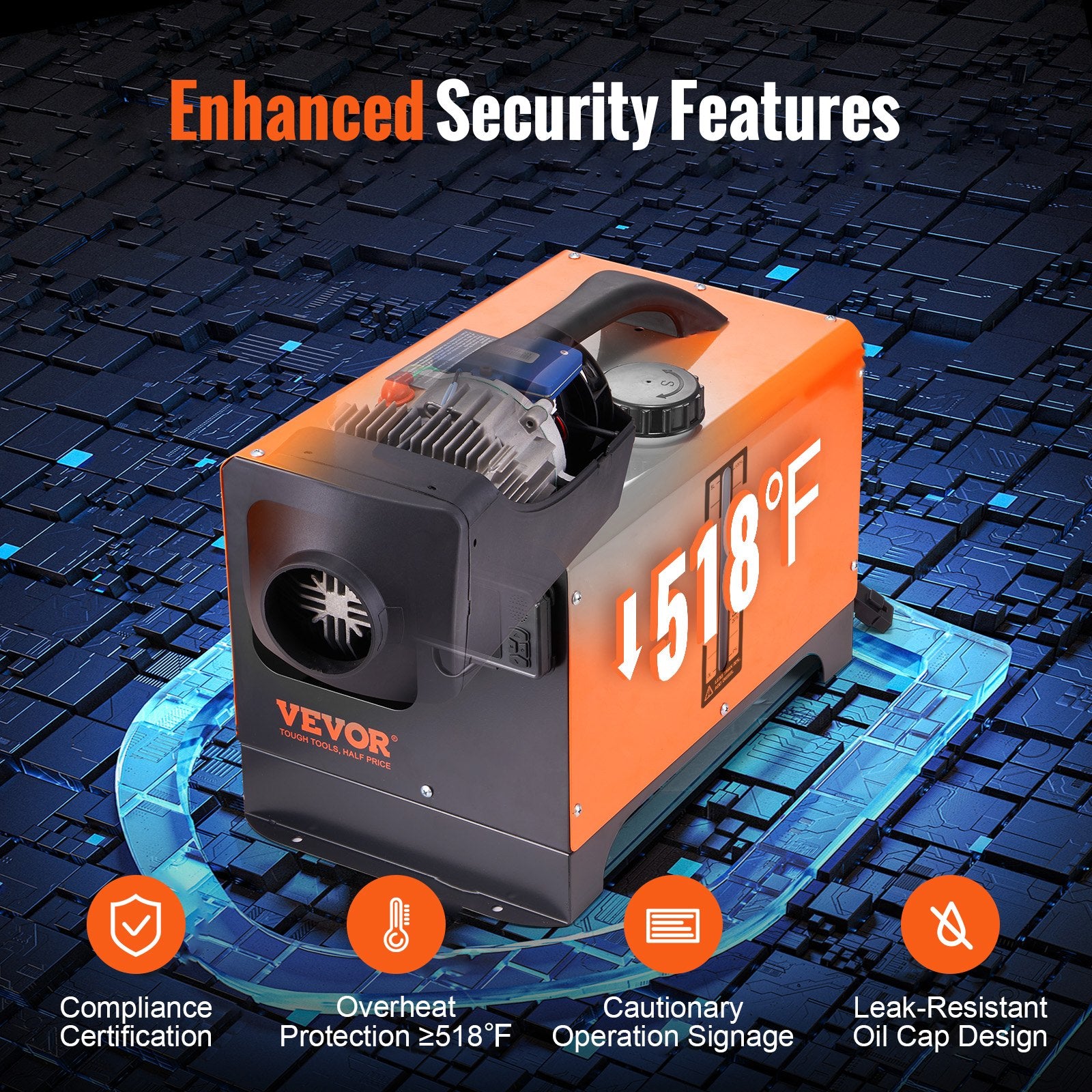 - Säker och pålitlig: Vår 12V dieselvärmare har ett högt säkerhetssystem som möjliggör bekymmersfri användning i olika miljöer som bilar, husbilar och fartyg. Den erbjuder konstant temperaturkontroll, tidsfunktion, röstsändning, förvärmning och överhettningsskydd vid ≥518 °F/270 °C, vilket garanterar en säker och bekväm upplevelse hela natten.