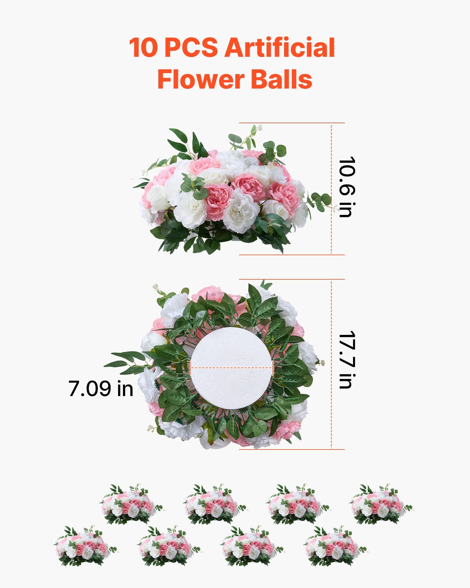 Blombollsarrangemang Bukett 10 st, 450 mm diameter Konstgjorda blombollar Bröllopsbordsdekorationer, Rosarrangemang för bröllopsbordsdekorationer Heminredning, Rosa och vita rosor