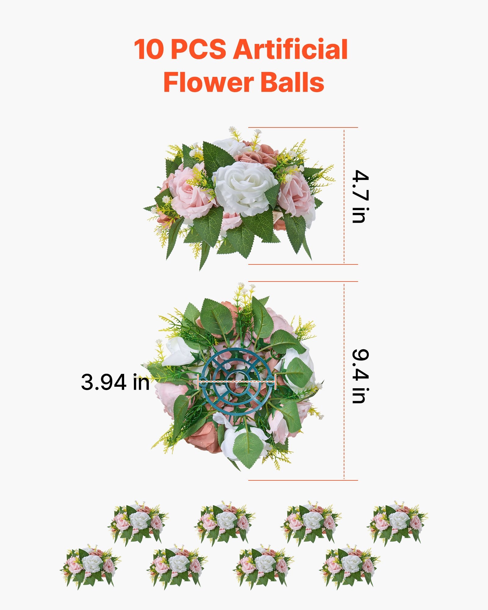 Blombollsarrangemang Bukett 10 st, 240 mm diameter Konstgjorda blombollar Bröllopsbordsdekorationer, Konstgjorda rosenarrangemang för bröllopsbordsdekoration Hemdekoration, Rosa och vita rosor