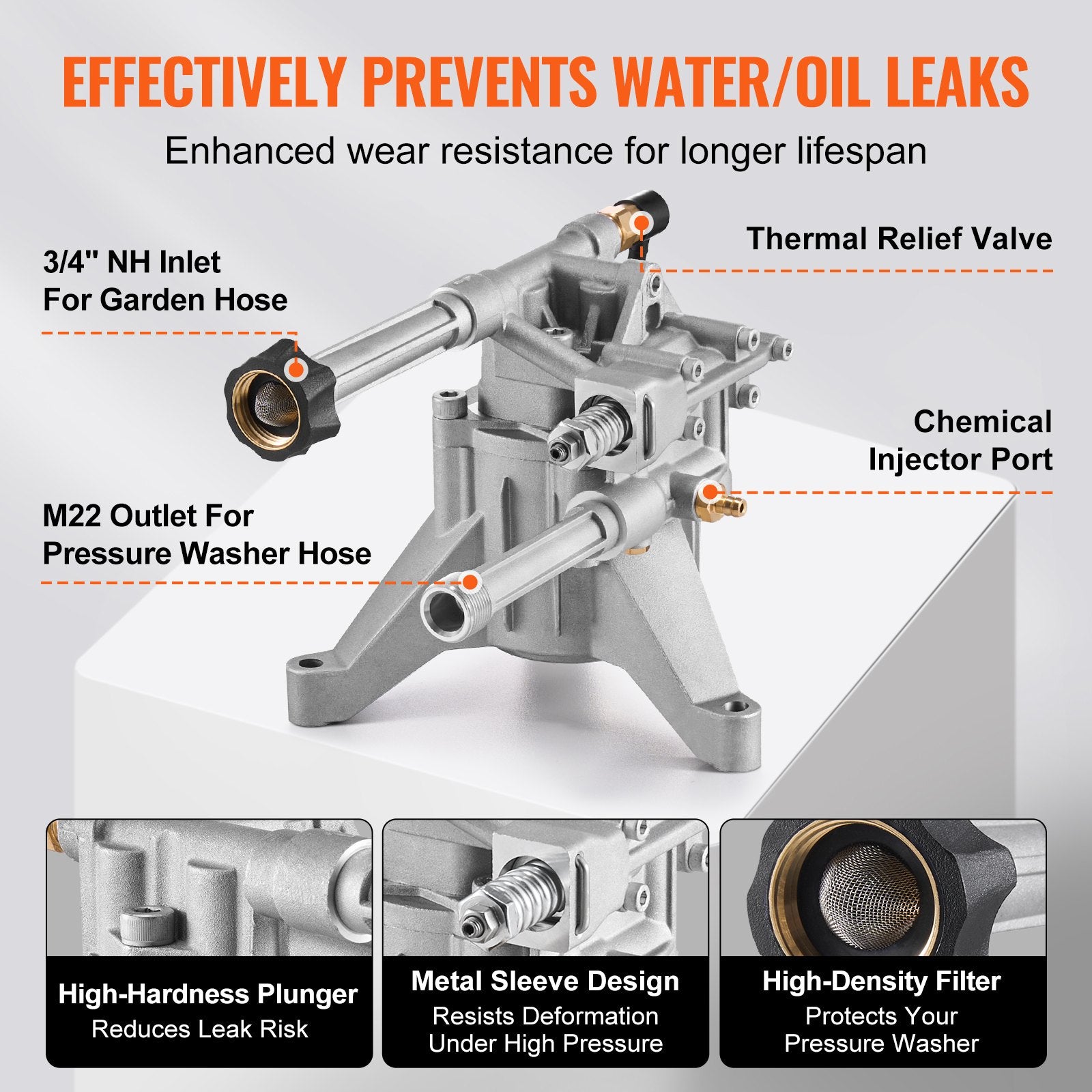 - Underhållsfri design: Denna ersättningspump för högtryckstvätt har ett underhållsfritt vevhus, vilket eliminerar behovet av oljebyten. Idealisk för elektriska tvättmaskiner på 2500–3000 PSI och 2,5 GPM, perfekt för rengöring av väggar, staket, trottoarer, fordon och mer.